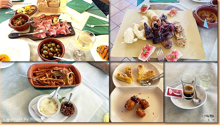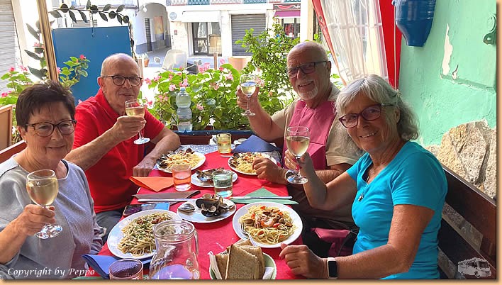 | Zu Mittag lassen wir uns in der Osteria dei Murales verwöhnen und es schmeckt wieder hervorragend. Am Nachmittag wird vorm Womo Siesta gehalten. |