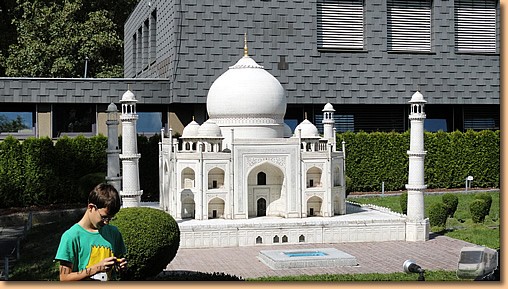 Zwei Tage mit lieben Camperfreunden, das tut uns Womofans richtig gut! Gitti und Wolfgang aus Wr. Neustadt sind mit ihrem Enkelsohn Jannik am Campingplatz in Klagenfurt. Gemeinsam besuchen wir MINIMUNDUS, die kleine Welt am Wörthersee, mit unserer zum halben Preis (=6,50€ pro Person). In einem Tag um die ganze Welt, ca. 150 Modelle von Bauwerken, Schiffen und Zügen sind zu bestaunen. Einiges haben wir schon in natura gesehen, viel Interessantes wartet noch auf uns. |
