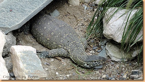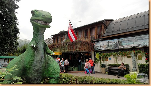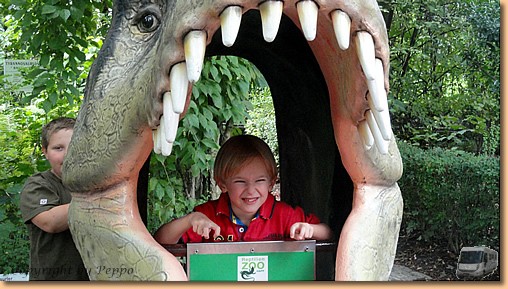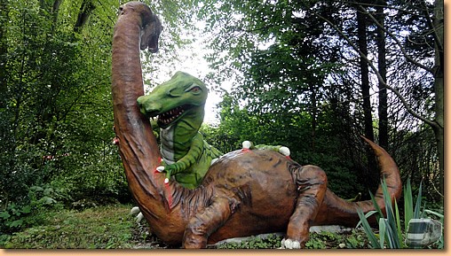 Zur Freude des kleinen Jannik statten wir anschließend auch dem Reptilienzoo Happ einen Besuch ab, mit der natürlich gratis. Während wir unser Augenmerk auf die lebenden Tiere richten, ist unser jüngster Camperspross im Dinopark in seinem Element. |