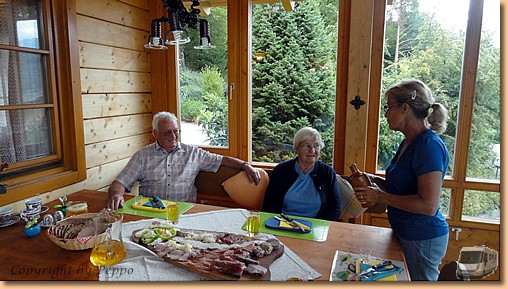 Am Abend treffen unsere lieben Schweizer Freunde Yvonne und Toni bei uns ein und bei einer zünftigen "Kärntner-Bretteljause" werden Erinnerungen bzw. Neuigkeiten über unsere Ungarn-Thermenurlaube ausgetauscht. |