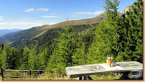 Mittagsrast gibts auf der Bockhütte auf 1900 m, wir genießen die Aussicht und eine zünftige Jause. |