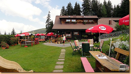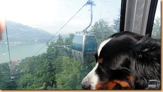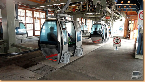Nach einer zünftigen Stärkung treten wir bei angenehm kühler Temperatur den Rückweg an. Eine von den unzähligen 4-Personen-Kabinen bringt uns zurück zur Talstation Annenheim wo unser Auto, aber auch 26°C sommerliche Hitze, warten. |