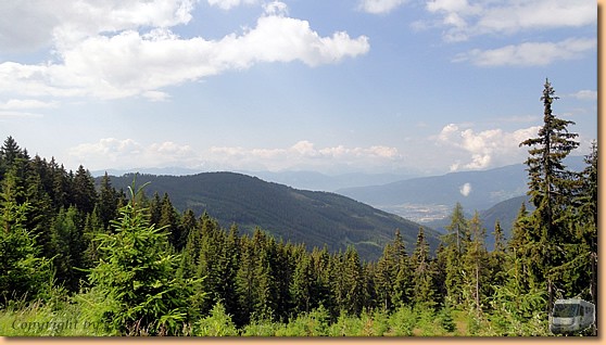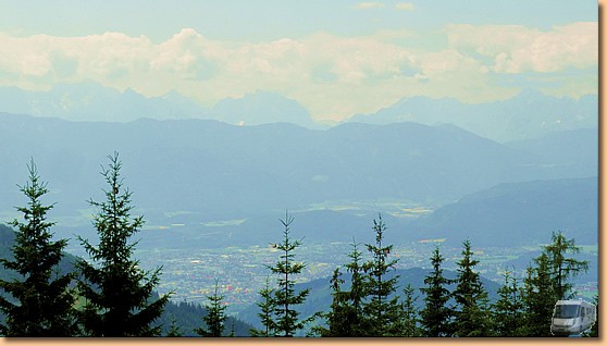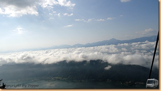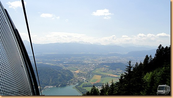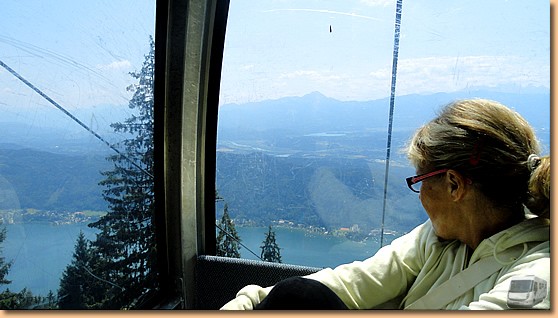 Heute ist unser Kärnten-Card-Ausflugsziel (mit gratis) die Gerlitzen. Nach kurzer Autofahrt schweben wir mit der Kanzelbahn in ca. 20 Minuten durch die morgendliche Restbewölkung zur Mittelstation in 1463m. |
