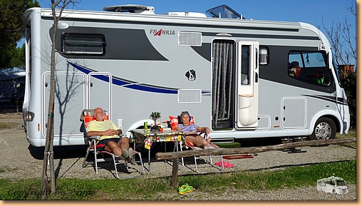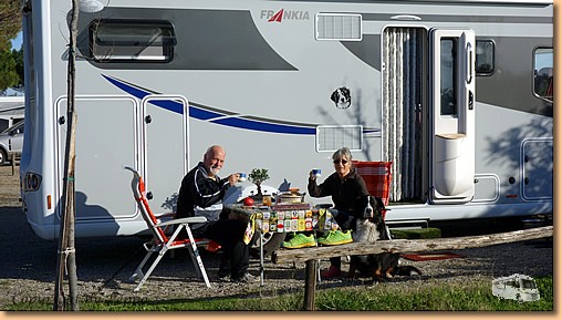 Der gleiche Faulenzertag wie gestern. Einen einzigen Unterschied gibt es: die Pizzen macht heute das ristorante vom Platz! Aber wir holen sie uns ins Womo, denn hier ist es gemütlicher.