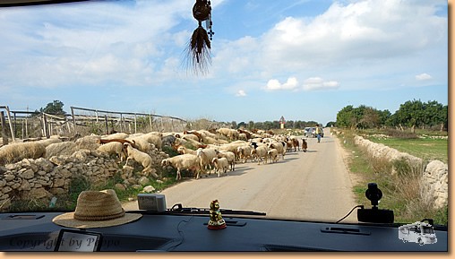 Heute haben wir unseren ersten Stau. Vier Räder stehen still um Vierbeinern den Vortritt zu lassen. |