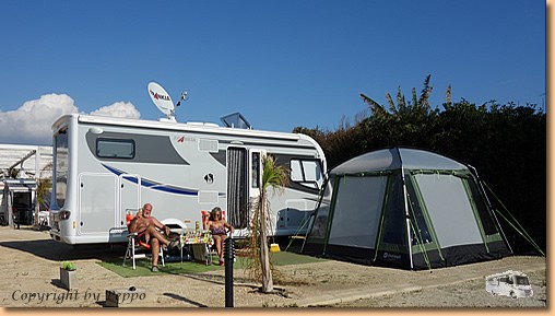 Und irgendwie kommen wir am Nachmittag zu der Einsicht, dass wir zwar einen wunderschönen Sonnenplatz belegen, aber eventuellen Winterstürmen ziemlich ungeschützt ausgesetzt sind. Das ergibt ein mulmiges Gefühl und die Folge ist, ab morgen ziehen wir vielleicht auf ein möglicherweise geschützteres Plätzchen um. |