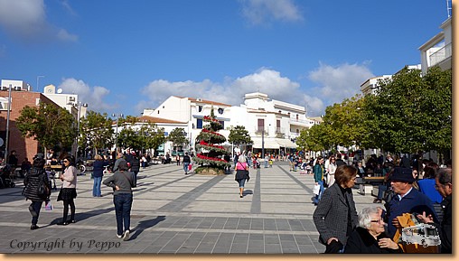 Heute haben wir Arbeitsteilung. Müsli's Aufgabe einen Streuner quer über den CP zu jagen bringt ihr eine Zerrung ein und für die nächsten Tage Schonung. Helga hat Waschtag, schaltet um 8:30 Uhr die Maschine ein und sieht ihre Wäsche bis dato nicht mehr. Defekt mitten im Waschgang, nach langem Hin und Her nehmen die CP-Betreiber unsere klitschnassen Sachen und waschen sie in ihrer privaten Maschine. Ob sie im Trockner landen oder morgen nass vor der Türe stehen wird sich weisen. Ich fahre mit Ria und Beat mit den Rädern nach Marina di Ragusa und wir sehen uns den Ort und das bunte Feiertagstreiben an. |