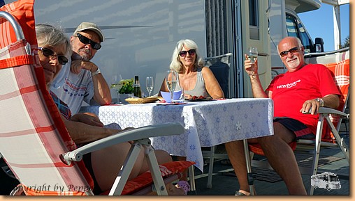Nach 25 km gibts am Nachmittag ein gemütliches Zusammensitzen bei den Beiden und wir können uns auch heute über einen herrlichen Tag im Süden freuen. |