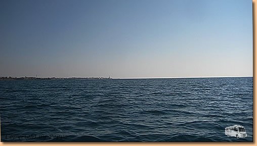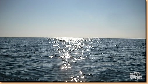 Nichts Neues am heutigen Tag. Helga's Wäsche steht sauber gewaschen vor der Türe, die Sonne tut beim Trocknen ihr Bestes. Das Meer ist spiegelglatt, also steht einer neuerlichen Bootsfahrt nichts im Wege. Diese fällt dann auch etwas länger aus, ebenso der anschließende Manöverschluck. |