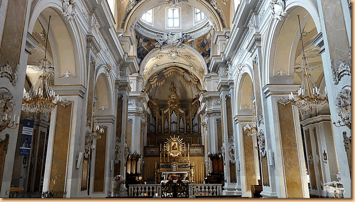 Heute trennen sich unsere Wege. Ich fahre mit Bernd nach Catania, Helga und Müsli hüten das Womo und stürzen sich in die übliche Hausarbeit. Der riesige Fisch- und Gemüsemarkt bietet die verschiedensten Fisch- und Obstvarianten. Beim Erkunden der Sehenswürdigkeiten ist der Hopp on - Hopp off - Bus hilfreich, beim Erklimmen der Kuppel der Badia di Sant'Agata ist allerdings Treppensteigen angesagt. Catania gehört auch zum Unesco - Welterbe. |
