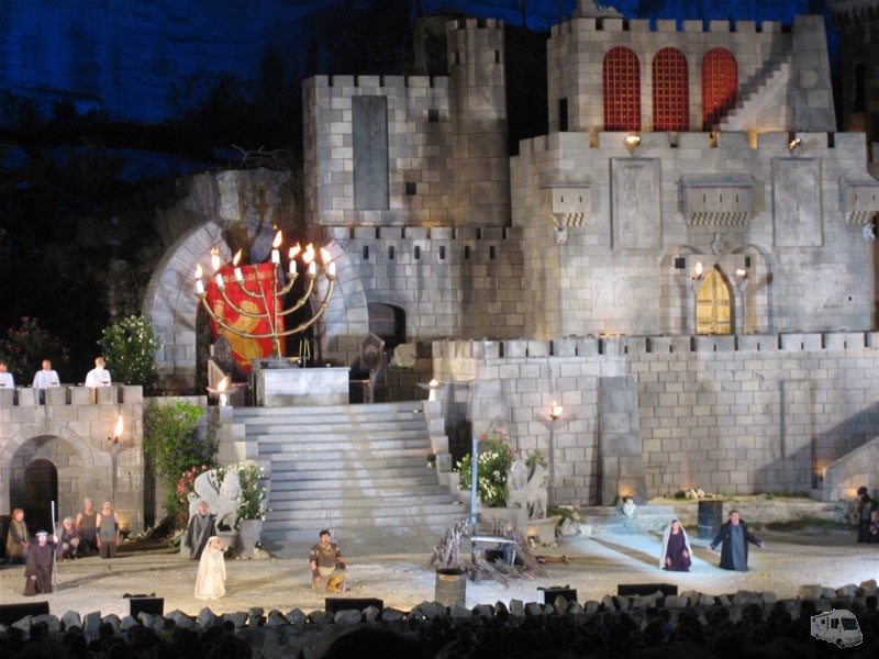 Interessante Lichteffekte verwandeln die Kulisse immer wieder aufs Neue. Kein Vergleich zu einer Aufführung in einem Theater. Um 24 Uhr landen wir wieder am Campingplatz, der private Shuttledienst hat bestens funktioniert.