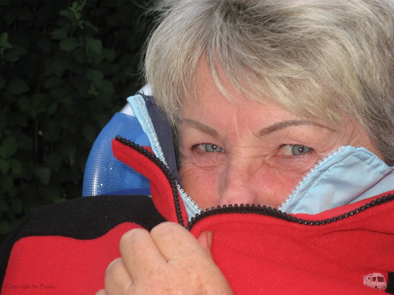 Herrliches Wetter, frisches Frühstücksgebäck, alles bestens. Nur das Vertreiben der Stare durch Schießen etc. vermiest unserer Fefi den Urlaub. Stare sind fast unbeeindruckt, Fefi (aber auch andere Hunde) macht den Zitterfinken. Mittags kommt starker Wind auf, aber wir haben einen geschützten Platz. Am Abend kommen die Camperfreunde und wir erleichtern unsere Kurpackung.