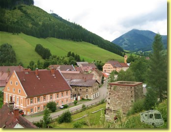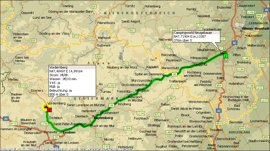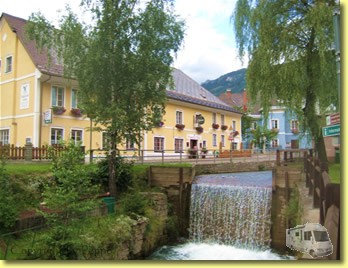Nach einer überraschend ruhigen Nacht zwischen Autobahn und Straße ist der Vormittag voll mit Informationen, Besprechungen über einen eventuellen Um-, Ein- und Ausbau diverser technischer Geräte und Mobiliar und natürlich mit Preisverhandlungen. Zu Mittag sind wir uns mit Hr. Neugebauer einig und wir haben ein neues Womo. Unsere Umbauwünsche werden notiert und hoffentlich auch so ausgeführt. Wir fahren nun unsere nächsten Urlaube mit Womo Nr. 3, einem Frankia mit Einzelbetten, Hubbett, großer Garage, einer interessanten Nasszelle und viel Platz für die Hunde. Um 14:00 gehts weiter auf einen Stellplatz nach Vordernberg an der Eisenstraße. Wir machen einen Rundgang durch den Ort, fast jedes Haus hat etwas mit dem damaligen Erzabbau zu tun, gehen einen Teil des 5 km langen Eisenwanderweges und beschließen, diesen morgen früh in Angriff zu nehmen.