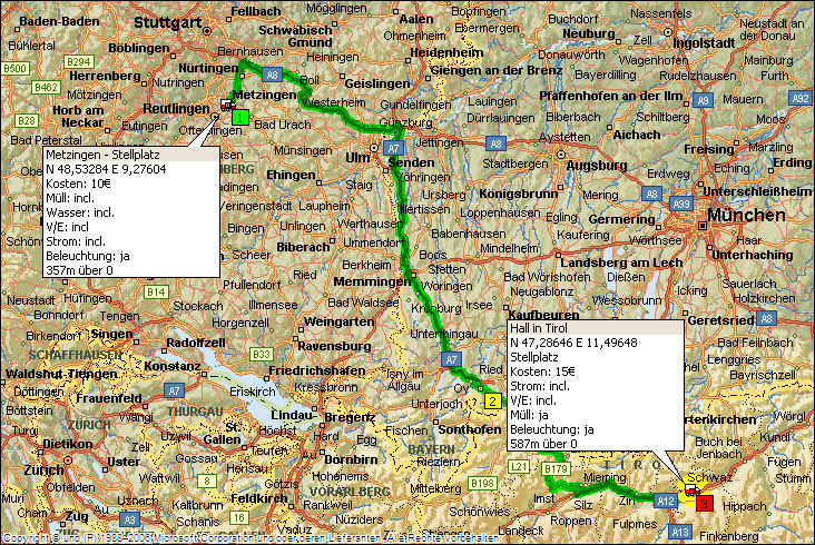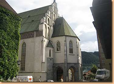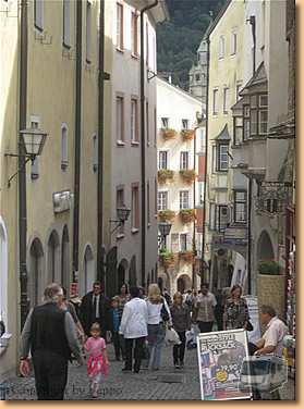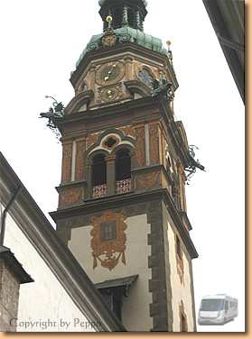 Um 11 Uhr ist Abfahrt Richtung Füssen - Reutte - Innsbruck bis Hall in Tirol, denn mit Campern aus Nürnberg, die wir bei der Fa. Boerner treffen und dann unsere Nachbarn am Stellplatz sind werden noch Neuigkeiten und Informationen rund ums Womo ausgetauscht. Ohne Stau (den gibt es 8 km auf der Gegenseite) kommen wir flott voran, der Stellplatz ist wieder in Stadtnähe und es geht auch gleich auf zum Rundgang. Eine saubere Stadt, die Strassen zum Teil eng und winkelig. Ein Hauch von Italien, viele Cafes mit Sitzgelegenheiten auf den Strassen.