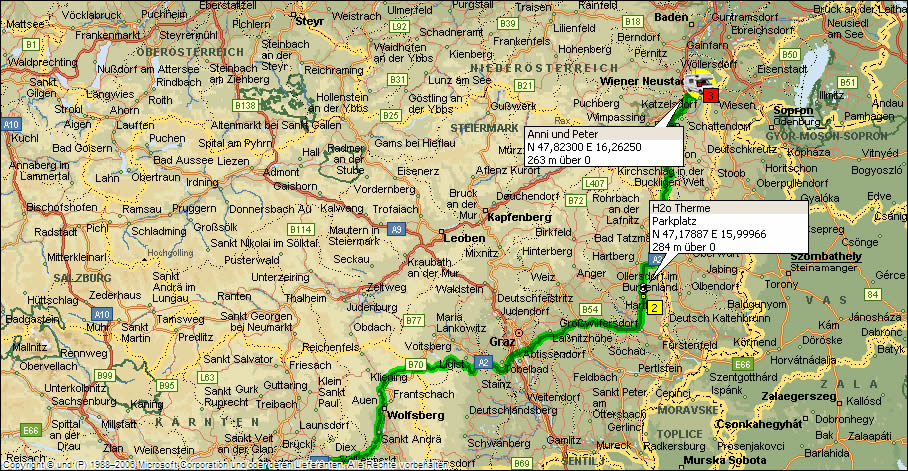 Um 10:30 hole ich Eva und Helga in der H20-Therme in Bad Waltersdorf ab und weiter gehts nach Wiener Neustadt. Dort stehen wir wieder am "Stellplatz von Anna und Peter". Unsere Camperfreunde zeigen uns wieder ein für uns neues Heurigenlokal, in welchem nicht nur das Essen gut schmeckt, auch der frische Sturm findet großen Anklang. Anschließend bringen Anna und Helga Eva zum Bahnhof, Peter und ich beschäftigen uns derweilen mit PC und Wlan-Antenne. Mit Plaudern vergeht die Zeit und gegen 21 Uhr heißt es "Gute Nacht".
