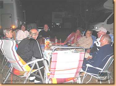 Am Abend gibt es ein deutsch-österreichisches Zusammensitzen mit Camperfreunden bei Musik, Wein- und Schnapsverkostung. Um 22 Uhr wird es kühl und alle verziehen sich in ihre Womos.