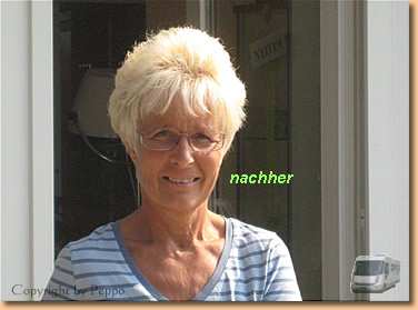 Nach dem üblichen Morgenspaziergang wird gefrühstückt. Um 9 Uhr begleite ich Helga in die Stadt zum Friseur. Der Salon unterscheidet sich überhaupt nicht von denen in Austria. Sauber, freundliches Personal, perfekte Bedienung, allerdings kann der Preis mit den unsrigen nicht mithalten. Knapp 8 € bezahlt sie für waschen, schneiden, fönen und Kurpackung. Die Friseurin hat es gut gemeint und Helga kommt mit relativ kurzen Haaren aus dem Geschäft.