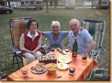 Am Nachmittag sind wir bei Marianne und Rolf auf ein Glas Wein eingeladen. Am Abend haben wir dann Besuch: Renate mit ihrem Siegfried, der heute seinen 75. Geburtstag feiert, sowie Rolf und Marianne.