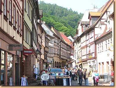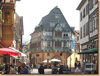 Auf gehts weiter nach Miltenberg. Auf dem Weg dorthin gibt es ein Teddymuseum, leider öffnet es erst um 14 Uhr und so findet unser geplanter Besuch nicht statt. Wir stehen in Miltenberg wieder perfekt auf einem Stellplatz direkt am Main und vor der Altstadt. Der Bummel durch die Fussgängerzone mit ihren Fachwerkhäusern ist sehenswert und endet für uns Vier in einem urigen Gastgarten mit einem gemütlichen Mittagessen.