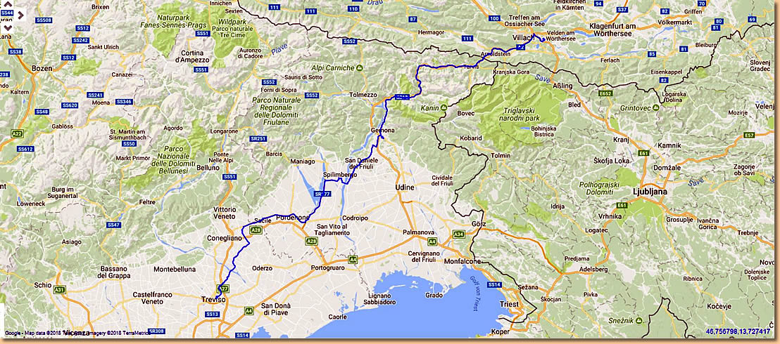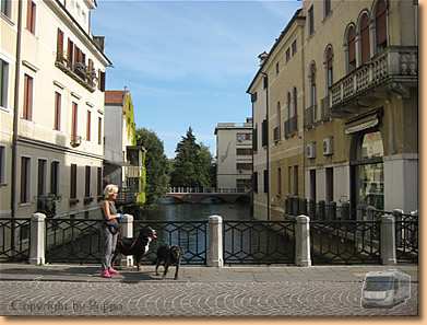 Um 10:30 starten wir unsere Kalabrienreise. Diesmal ohne Autobahnen, wir fahren auf den Bundesstrassen in den Süden. Die alte Strasse durchs Kanaltal weckt Erinnerungen an früher, man sieht einfach viel mehr vom Land und den kleinen Orten. Um 14:30 treffen wir am Stellplatz in Treviso ein, und da das Thermometer 29°C zeigt machen wir erst einmal Mittag. Der Stadtrundgang ist für Helga etwas enttäuschend, Gassen und Plätze sehen für sie nicht sehr einladend aus. Sie wird sich an Italien schon noch gewöhnen.