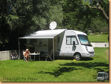 Heute am Siebenschläfertag zeigt das Thermometer 29°C und wir haben den CP Ronacher verlassen und landen in Glanz, nähe Irschen, am Rad- und Wandercamping "Ponderosa". Ein kleiner, gepflegter CP, die Wirtin sehr freundlich und Hunde gratis! Der CP fest in holländischer Hand, für uns ist jedoch noch ein schöner Schattenplatz frei.