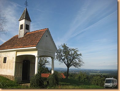 Die Aussicht auf Stainz wunderbar, das Essen und trinken voll o.k. und einer ruhigen Nacht am Parkplatz steht nichts mehr im Wege. |