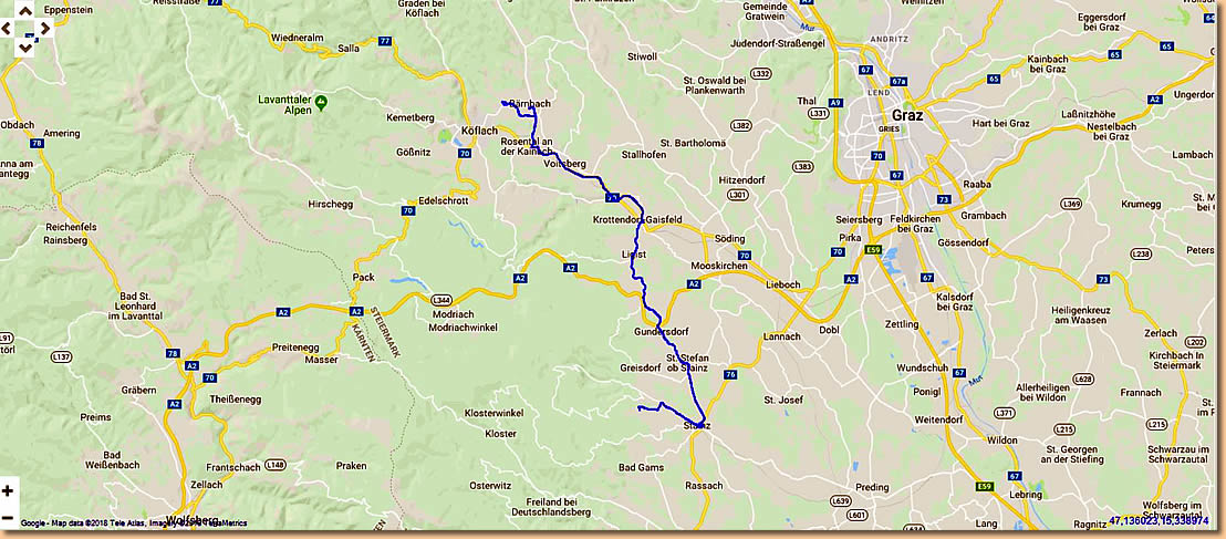 Weiter gehts nach Stainz auf den uns schon bekannten Parkplatz in der Ettendorferstrasse. Wir besichtigen den Ort und essen in einer Pizzeria.