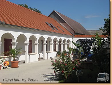 Horitschon ist für heute unser nächstes Ziel. Beim Weingut und Heurigen Duschanek finden wir nicht nur einen Übernachtungsplatz vor, sondern selbstverständlich auch eine gute Küche. Peter und Anna kommen nach, treten aber nach kurzer Zeit die Heimreise an (keine Entsorgungsmöglichkeit vorhanden). Strom ist vorhanden, also haben die Hunde ein gekühltes Womo und wir machen uns auf bei 30° Hitze den Ort zu erkunden.