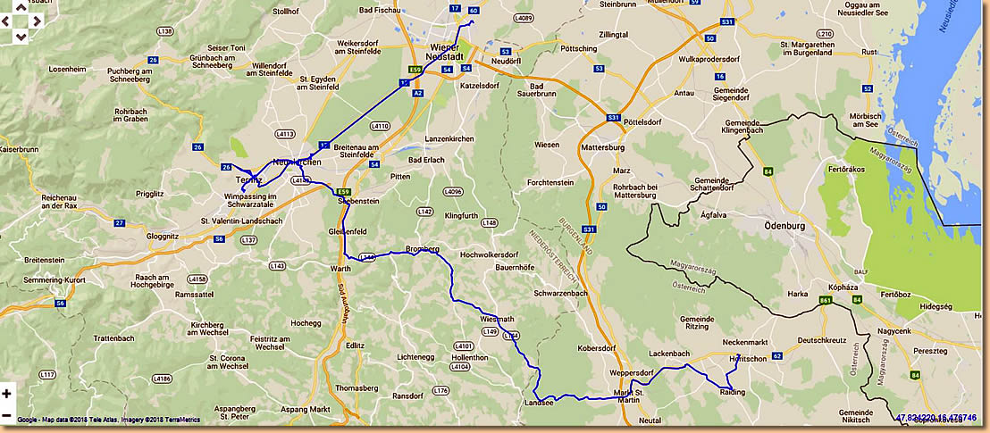 Weiter geht es, fernab von Autobahn und Schnellstrasse, nach Neunkirchen. Von der Fa. Neugebauer wird ein neuer Dreh-Drückknopf montiert. Später, in Ternitz, suchen und finden wir einen schattigen Parkplatz und halten Mittagsrast. Es folgt ein Kurzbesuch bei Rosi und Hans K. Wir freuen uns die Beiden wiederzusehen. Wir wünschen Ihnen viel Kraft für die kommende Zeit.