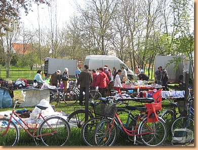 Heute ist Markttag und wir machen uns mit den Eisenmännern per Rad auf den Weg. Diesmal werden wir auch fündig und kommen mit Geschenken für Eva, Claudia und Nadja wieder heim. Ich finde eine solarbetriebene Blume, klein, beweglich, fein und überaus kitschig. Allerdings werden beim nächsten Markttag einige mehr davon den Weg in die diversen Wohnmobile finden.