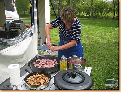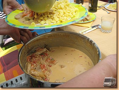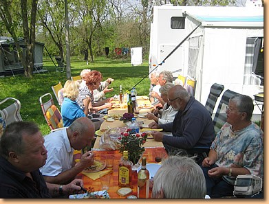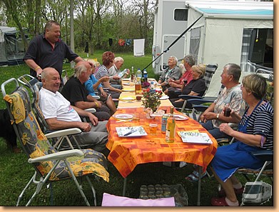 Den Vormittag verbringen wir im Bad, gegen Mittag geht Helga mit Müsli in die Stadt um für Ruth Blumen zu kaufen. Um 13 Uhr laden Ruth und Georg zum "Helferfest" ein. Alle, die beim Vorzeltaufbau geholfen haben, werden mit Essen und Trinken verwöhnt.