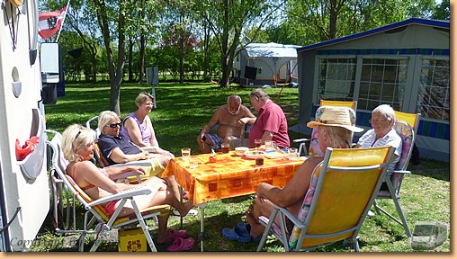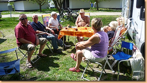 Irgendwie findet sich wieder eine lustige Runde und bei strahlendem Sonnenschein wird der Inhalt der Kurpackung verkostet.