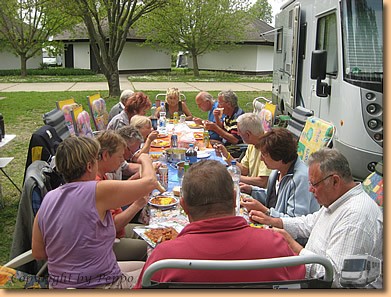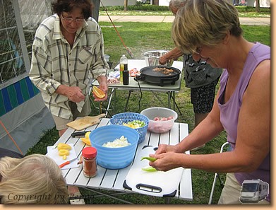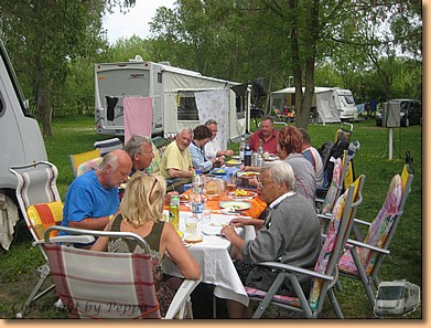 Unser vorletzter Morgenspaziergang durch die Puszta bei angenehmen Temperaturen beschert uns (Oster)hasen, Fasane und Rehe. Dann aber schnell ins Bad, um auch bald wieder zurück beim Womo zu sein. Heute wird gemeinsam gekocht. Das Kesselgulasch, hervorragend gekocht von Toni und seinen fleißigen Helferinnen verbreitet bald einen herrlichen Duft. Wir sind für das Dessert zuständig, gelingt gottseidank auch nicht schlecht.