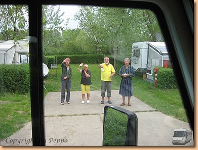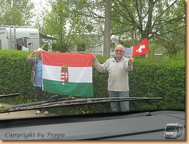 Auf Wiedersehen Turkeve, willkommen in Österreich in Deutsch-Jahrndorf. Unsere Campingfreunde verabschieden uns in Turkeve mit Fahnen und Winken, in Deutsch-Jahrndorf gibts ein Wiedersehen mit Anna und Peter.