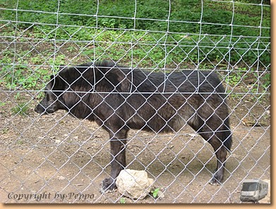 Wir erfahren viel über das Wolfsprojekt und sind von den wissenschaftlichen Arbeiten beeindruckt. Nach ca. einer Stunde muss Cherokee wieder ins Gehege. Wir hätten gerne noch eine Zeit mit dem wunderschönen Tier verbracht, denn das Gefühl neben einem Wolf zu gehen, ihm ohne Gitter ganz nahe zu sein ist eigenartig und faszinierend zugleich. Man hat zwar keine Angst, aber Respekt vor diesem doch wilden Tier ist da. Danke Eva, Florian und Claudia für dieses wunderschöne Geschenk. Uns wird noch das andere Wolfsrudel mit den vier Timberwölfen gezeigt und natürlich schauen wir uns den restlichen Tierpark an.