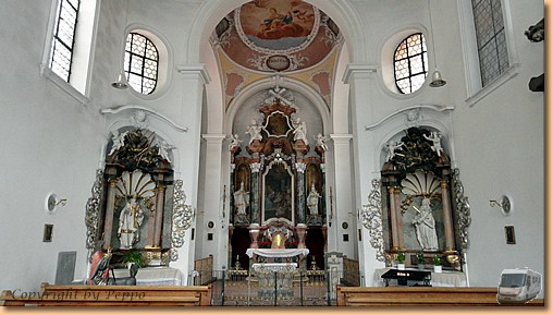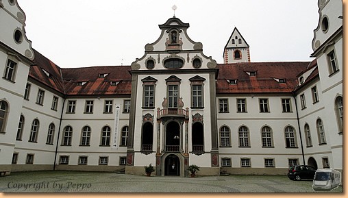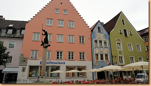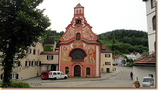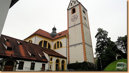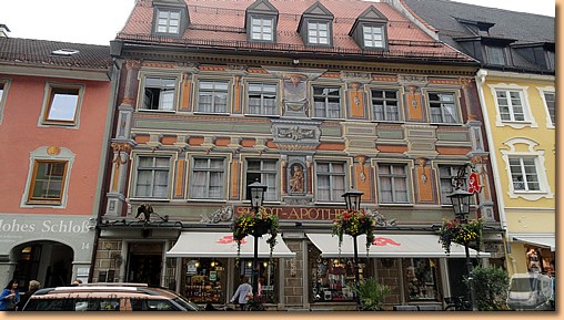 Um 9 Uhr stehen wir bereits wieder am Stellplatz in Füssen und gleich darauf gehts ab in die Stadt. Wir wollen noch vor dem angekündigten Regen wieder im Womo sein. Unser Rundgang verläuft durch die Fussgängerzone mit wunderschönen Hausfassaden bis zum Hohen Schloss und der Basilika Sankt Mang. Auch wenn man keine Medikamente braucht sollte man einen Blick in die Stadtapotheke am Hauptplatz werfen. An der farbenprächtigen Heilig-Geist-Spitalkirche kommt man ebenfalls nicht vorbei. |
