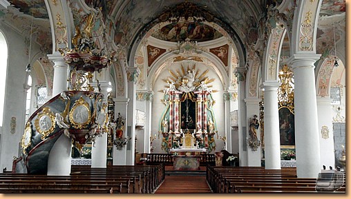 Der nicht allzu große Ort Kißlegg wartet gleich mit zwei Schlössern, zwei Seen und mit zwei Kirchen auf. Die Pfarrkirche St.Gallus und Ulrich zählt zu den schönsten Barockkirchen des Allgäus.