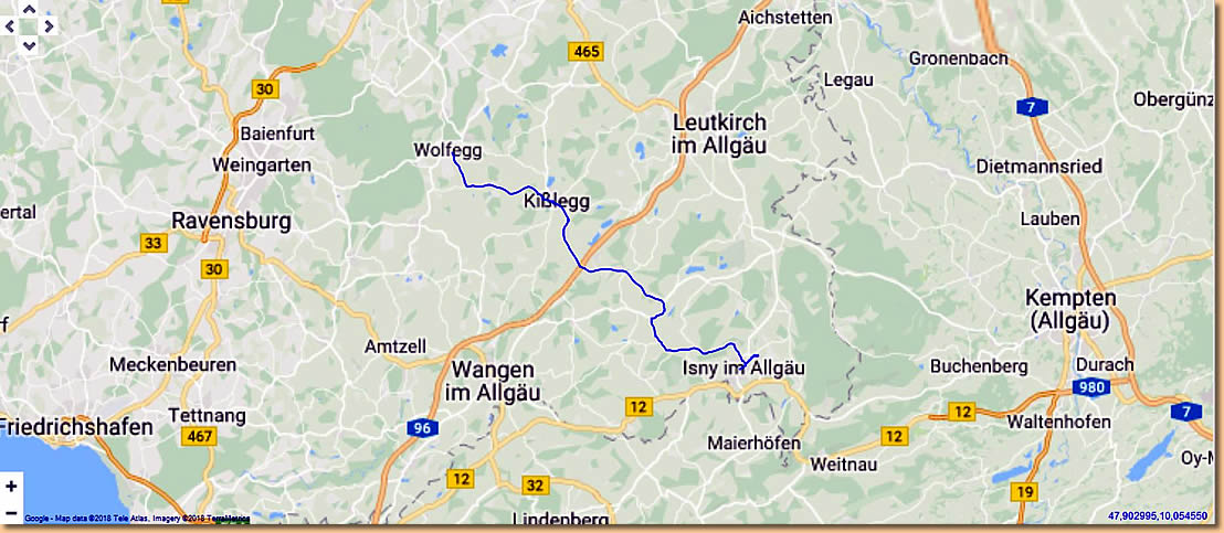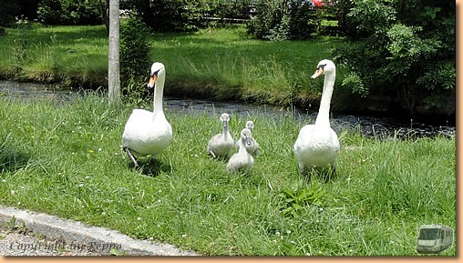 Unsere Reise geht weiter nach Isny. Da wir schon mal da sind, statten wir dem Werk von Dethleffs einen Besuch ab und finden nachher unseren Arto "wiedermal superklasse". Zentraler geht unser heutiger Übernachtungsplatz gar nicht. Fast mitten in der Stadt und doch verhältnismäßig ruhig. Ein kleiner Bach fließt vorbei und Müsli bekommt Besuch von Familie Schwan.