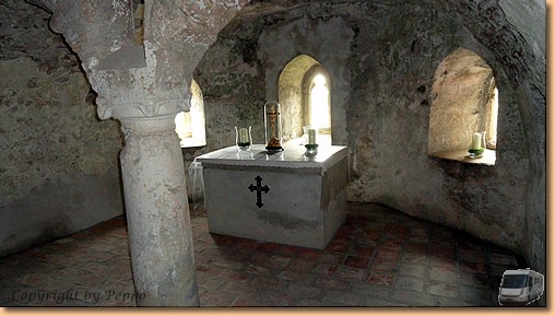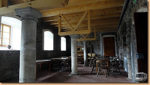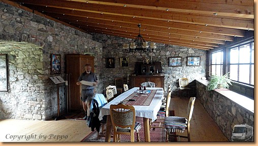 Um 9 Uhr sind wir startklar, holen unser Womo in Wernberg und ca. 1 Stunde später machen wir Zwischenstop in Arnoldstein. Beim Besuch der Klosterruine füttern wir Seele und Geist, der anschließende Einkauf bei Lidl tut unserem Magen gut. Wir haben Glück und treffen bei unserer Besichtigungstour einen kompetenten Mitarbeiter an, der uns bereitwillig durch die seit 1992 revitalisierten und neu aufgebauten Räume führt. Ca. 53000 freiwillige Helferstunden, und viele werden wohl noch dazukommen, Spenden aus der Bevölkerung und Zuschüsse von öffentlicher Seite stecken in diesem gigantischen Projekt.
