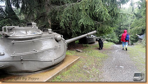 Kaum ist der Entschluss gefasst hört der Regen auf. Also auf nach Kranjska Gora. Der Stellplatz ist jedoch wenig einladend, das Wetter leider auch wieder und so fahren wir über den Wurzenpass (direkt!!) Richtung Heimat. Nicht ganz ("direkt"), denn beim Bunkermuseum machen wir Halt und maschieren tapfer im Regen, zum Teil aber auch unterirdisch im Trockenen, durch die wirklich sehenswerte Ausstellung. |