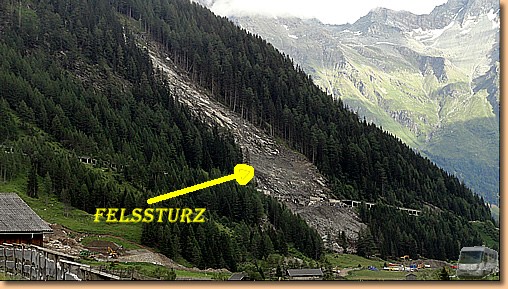 Seit Mai 2013 ist knapp über uns ein Stück der Felbertauernstrasse durch einen Felssturz unpassierbar, eine Umleitungsstrecke wurde eingerichtet und an der neuen Strasse wird fleißig gearbeitet. |