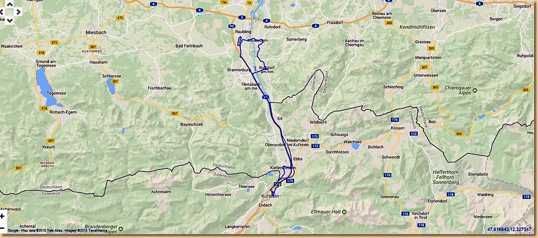 Bei trockenem Wetter Morgenspaziergang mit Müsli am Inn. Keine Spur vom "grünen Inn", braun und mit etwas höherem Wasserstand fließt er dahin. Dafür begleitet uns die Sonne auf dem Weg nach Raubling zur Firma Caravan-Company. Um 10 Uhr beginnen die Verkaufsgespräche und um 16 Uhr sind wir Besitzer eines neuen Womos. Der Firmenchef, Herr Jörg Wolfrum, ein äußerst kompetenter, gewissenhafter und freundlicher Mann findet für alle unsere Wünsche einen Weg und ist bemüht sämtliche Extras nach Möglichkeit zu erfüllen. Wir fühlen uns gut aufgehoben und sind eigentlich zuversichtlich, dass unser neues Womo, ein Frankia I 740GD, nach unseren Vorstellungen hergestellt bzw. umgebaut wird. Damit ändert sich auch unsere Reiseroute. Wir können den zweiten Termin bei Amstetten streichen und nehmen wieder den gleichen Weg zurück nach Hause. Unser Platz am Stellplatz in Kufstein ist noch frei (auch die Steckdose mit dem Reststrom) und der Weg in eine Pizzeria in der Altstadt ist nicht weit. Bei einem guten Rotwein lassen wir den Tag gemütlich ausklingen. |