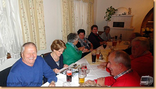 Wir überlegen uns am "Camping Treitler" um einen Jahresstellplatz anzusuchen, denn hier gibts außer Strom und Wasser auch Frühstück, Stadtrundfahrten, Hausbesichtigungen und Taxifahrt zum Camperstammtisch. Wir freuen uns liebe Freunde wie Gitti und Wolfgang, Monika und Karl, Annamirl und Peter, Traude und Hans wiederzusehen. Es gibt viel zu erzählen und natürlich auch zu feiern.