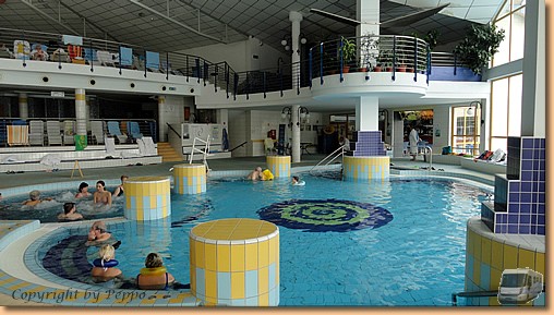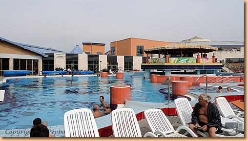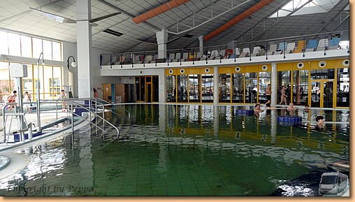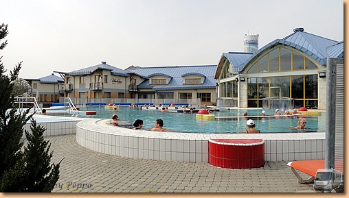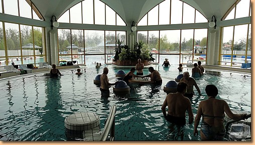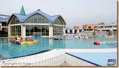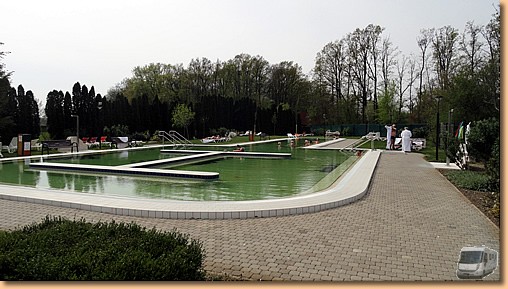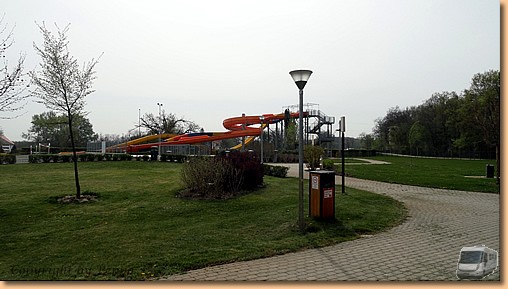 Unser zweiter Urlaubstag verläuft bestens. Ohne Zwischenfälle treffen wir kurz vor Mittag in Sarvar ein. Eine riesige Therme erwartet uns. Viele Innen- und Aussenbecken, einige Kinderbecken und Wasserrutschen in allen Formen und Größen. Ein Eldorado für Kinder und Jugendliche, aber so gar nichts für uns. Gottseidank gibt es viele kleine Thermen wo wir uns wohlfühlen und relaxen können. Campingplatz ****, ziemlich teuer aber Top in Ordnung. |