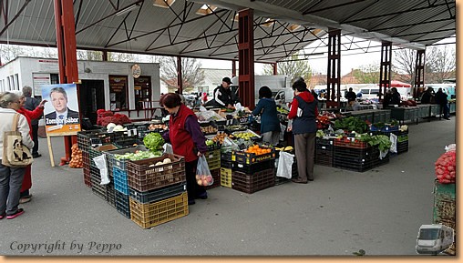 Der erste Morgenspaziergang entlang der Theiß verläuft zu Müslis vollster Zufriedenheit. Heute ist Markttag, Toni und Yvonne nehmen uns mit und wir kommen auch gleich in den Genuss einer kleinen Stadtrundfahrt.