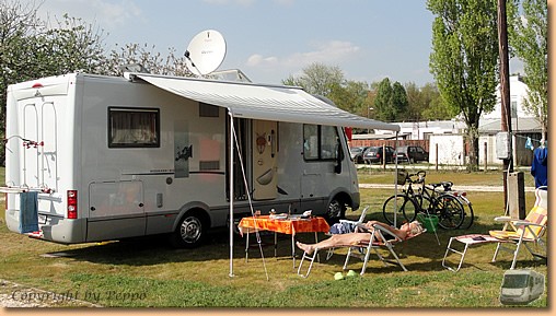 Kaffee gibts anschließend bei Toni und der Schnapsvorrat wird auch wieder etwas dezimiert. Mit der Sonne kommen auch wieder Camperfreunde an und so sitzen wir bis zum Eishockeymatch Bozen - Salzburg gemütlich bei uns vorm Womo. |