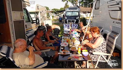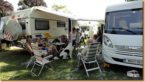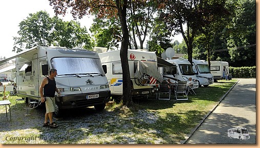 Nachts gibt es einige Regentropfen, in der Früh jedoch wieder wolkenloser Himmel. Ich fahre nach Graz auf den neuen Stellplatz und bin nicht der Erste. Traudi und Hans sind schon hier, kurz nach mir kommen Christi und Karl, Gitti und Wolfgang sowie Anna und Peter. Lediglich Annemarie und Peter können aus gesundheitlichen Gründen nicht kommen, ansonst sind wir eigentlich komplett. |
