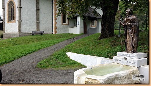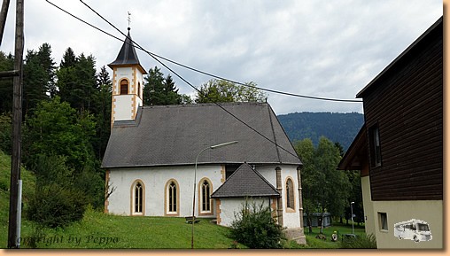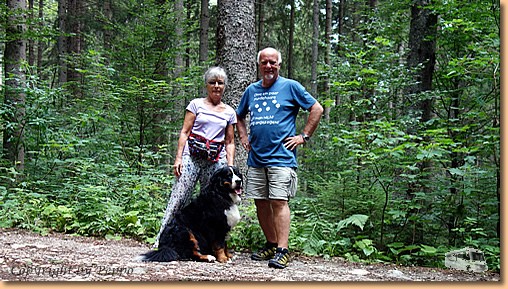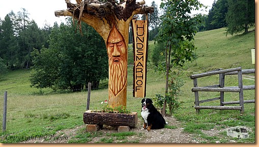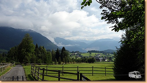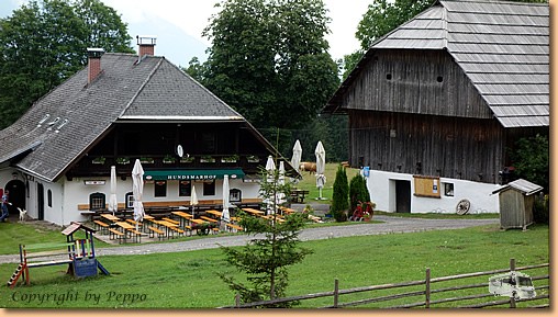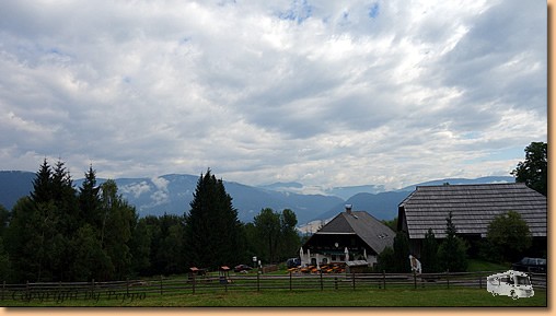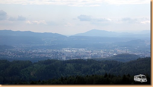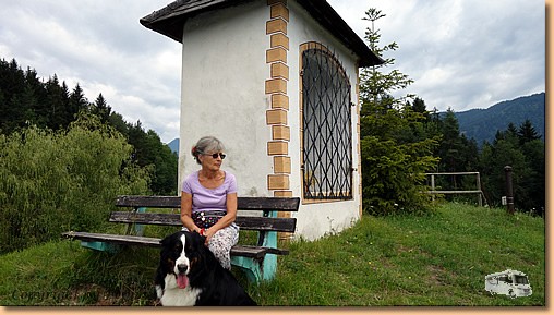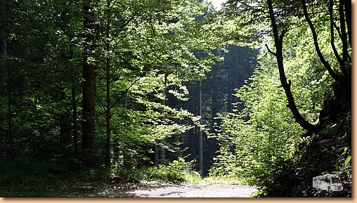 Von Heiligengeist spazieren wir auf einem nahezu ebenen, großteils im Schatten liegenden Wanderweg am Fusse des Dobratsch zum Hundsmarhof. Die Temperatur hier in etwa 1000m Seehöhe ist angenehm, es zeigen sich auch gelegentlich Ausblicke auf Villach. |