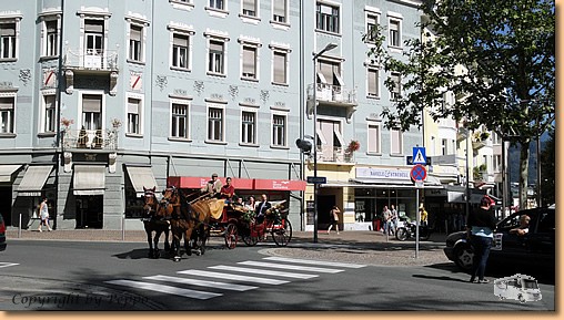 Dort wartet, umgeben von ihren Freundinnen, eine perfekt gestylte Braut. Nach altem Brauch muss Florian Claudia erst auslösen bevor sie zu ihm in die Kutsche steigen darf. Die Fahrt geht wieder zurück, quer durch die Altstadt bis vor das Parkhotel Villach. Mit grossem Applaus werden die Zwei von der Hochzeitsgesellschaft empfangen.