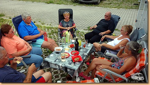 Inzwischen treffen Renate und Helmut aus Wöllersdorf und Herta und Gerhard aus Maria Saal ein. Während am Nachmittag die Niederösterreicher zum See radeln sitzen die Kärntner gemütlich vorm Womo. Zu erzählen gibts genug, die Radler kommen retour und gesellen sich zu uns und der Anfang des Campertreffens ist getan. |